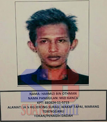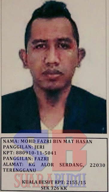 Menurut 999, Bahagian Jenayah Berat (D9) Ibu Pejabat Polis Kontinjen Terengganu telah mengesahkan perkara itu dan memohon orang ramai yang mengetahui atau melihat suspek boleh menghubung Balai Polis yang berdekatan.